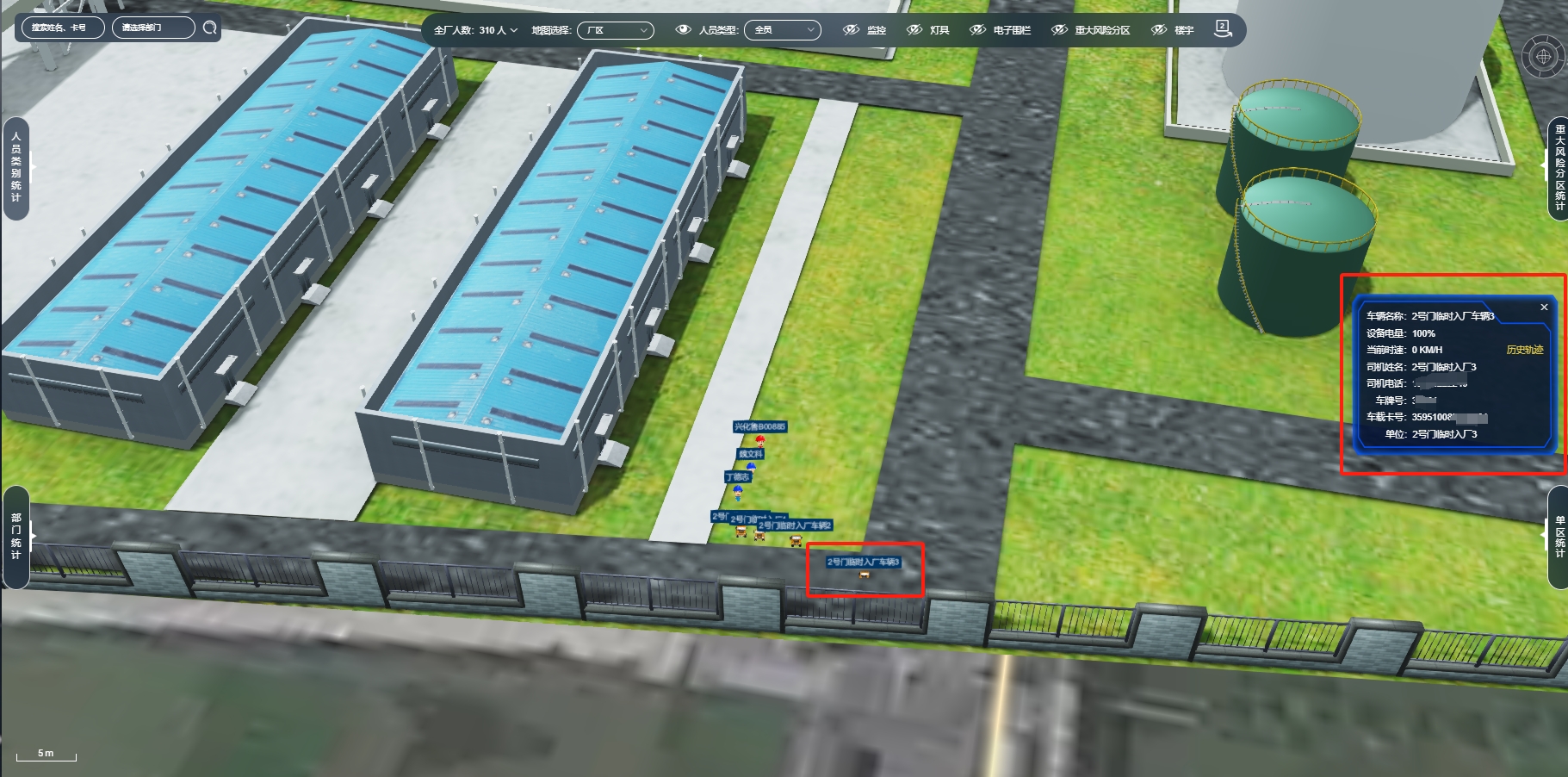 针对物料运输环节,系统构建了全流程智能化监控体系。对原料输送、成品转运车辆实施全域轨迹追踪。系统还预设了异常监测规则,当车辆出现超速、偏离规划路线、装卸货滞留超时等情况时,立即触发预警并提示管理人员调整调度方案,优化场内运输秩序,降低空驶率与等待成本。