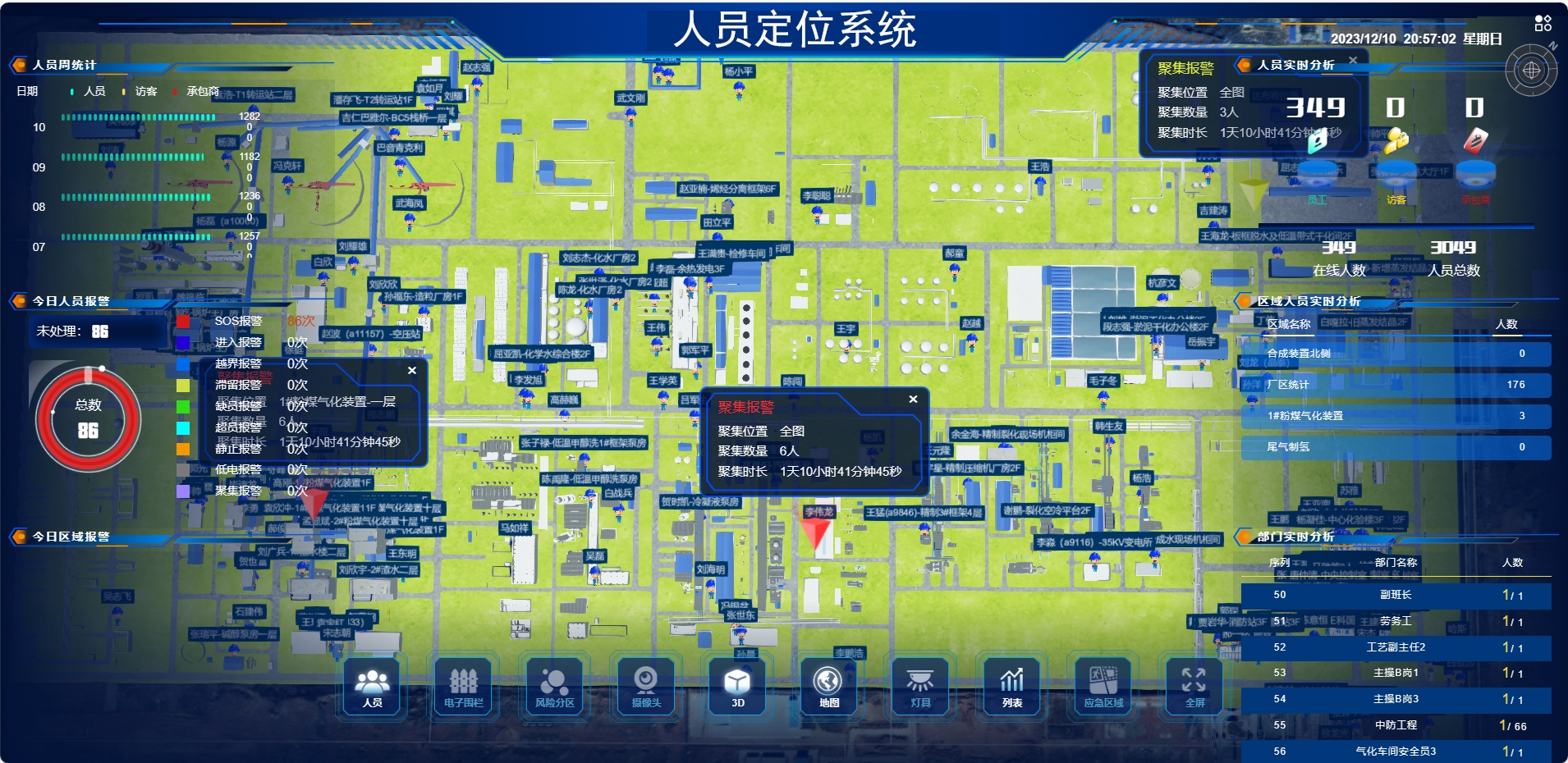 针对高速公路施工的管理痛点,新锐科创人车定位系统构建了三大核心功能模块,形成全流程的人车管理闭环。实时人车定位模块作为系统的核心基础,通过自主研发的定位算法引擎对多源数据进行融合优化,进一步提升定位精度与稳定性。管理人员可通过后台管理平台的电子地图,直观查看所有施工人员与车辆的实时位置分布,支持按工种、车辆类型、作业区域等多维度筛选查询,快速掌握全域人车动态。系统还支持2D/3D电子地图可视化展示,在隧道等复杂区域可分区域、分段落呈现人员位置,同时可联动视频监控系统,实现位置+影像的双重管控,让管理更直观、更高效。