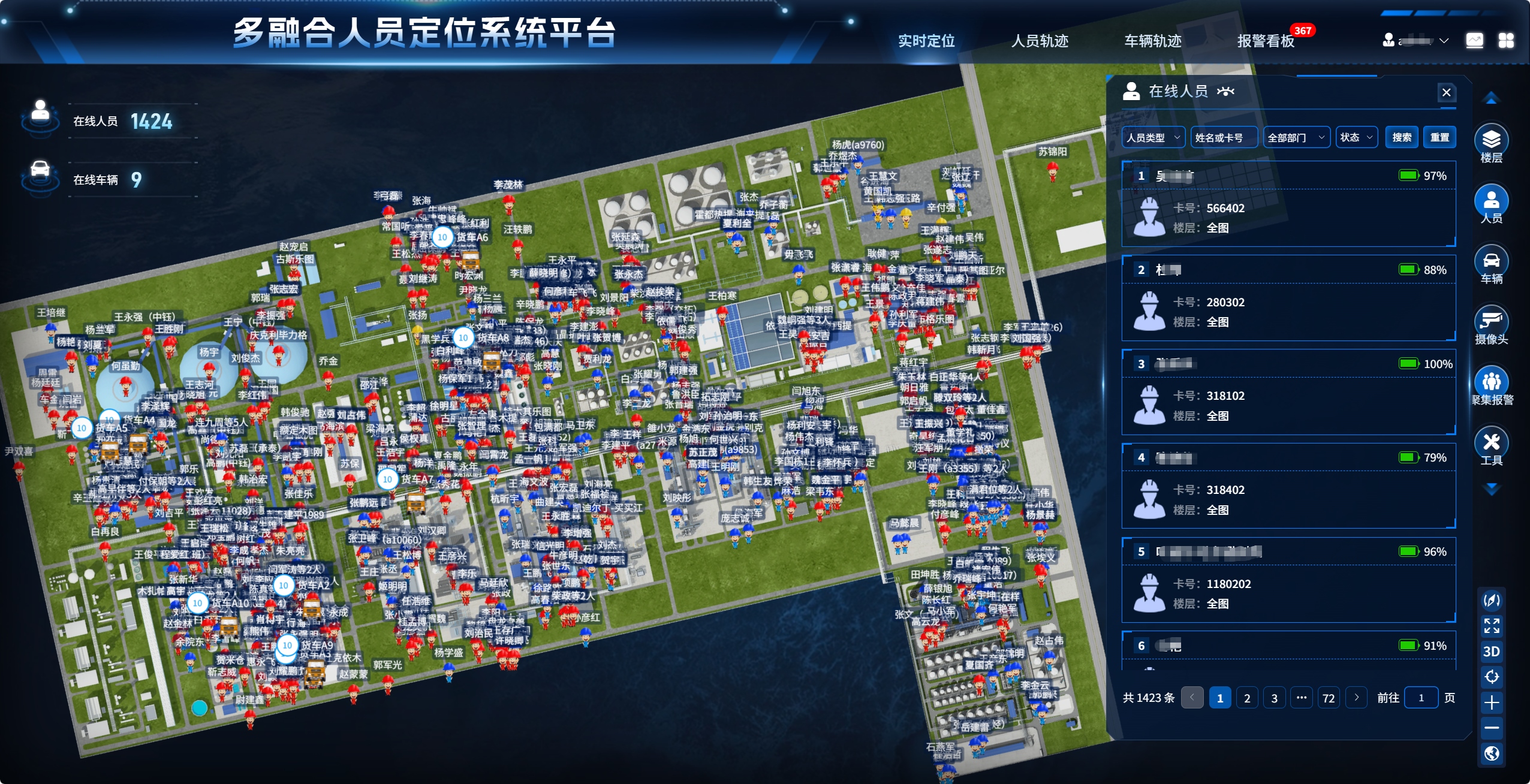 智能管理平台是国产RTK+UWB定位系统的核心载体,实现了定位数据的整合、分析与应用,将定位数据转化为实际管理效能。平台支持2D/3D电子地图可视化展示,可直观呈现全域人员与车辆的实时位置分布,支持按工种、车辆类型等多维度筛选查询,让管理人员能够快速掌握人员与车辆动态。平台集成了轨迹追溯、电子围栏、智能预警等核心功能,形成从动态监控到应急处置的管理闭环。轨迹追溯功能可完整记录人员与车辆的移动路径与时间节点,为作业流程核查、责任追溯提供可靠支撑;电子围栏功能可根据生产区域风险等级,灵活划定虚拟管控区域,对未经授权闯入、超时滞留等异常行为实时触发预警,通过平台弹窗、移动端推送等多渠道提醒管理人员,实现安全风险的主动预防。